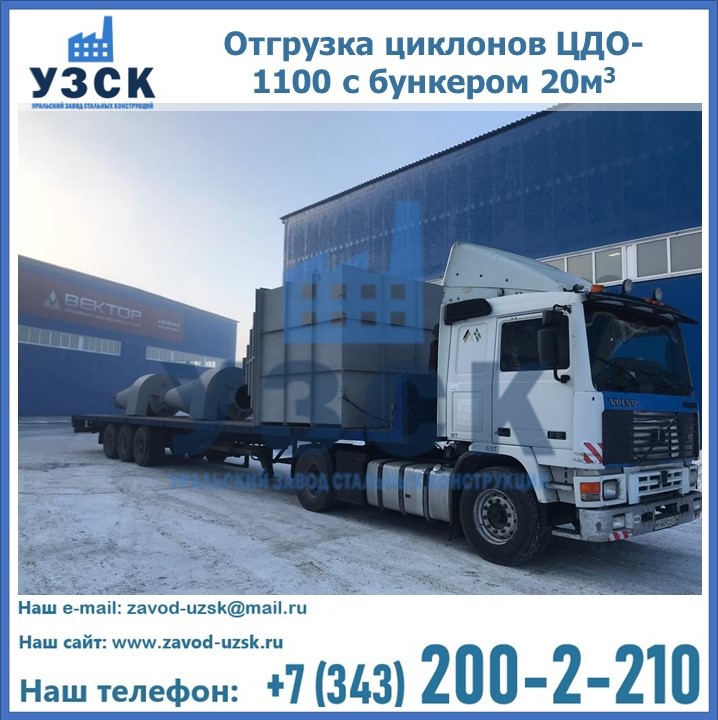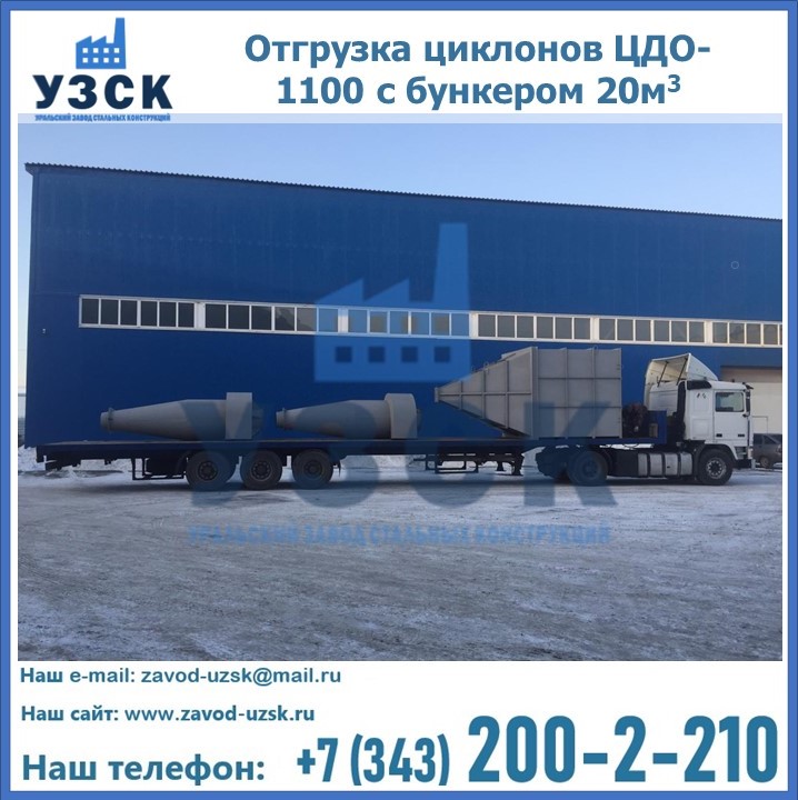 Циклоны ЦДО-1100 с бункером на 20 кубов были отгружены в декабре 2018 года в г. Новосибирск Киргизия.