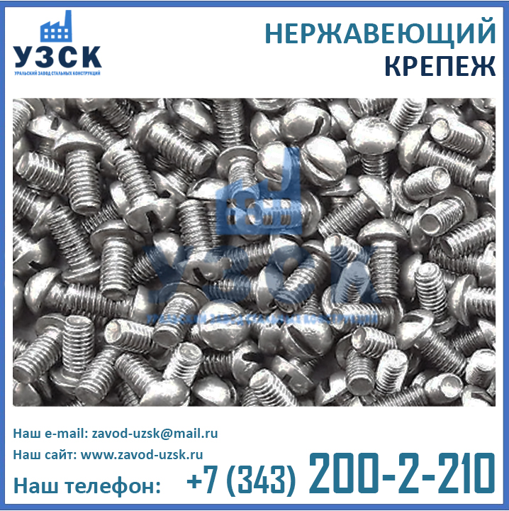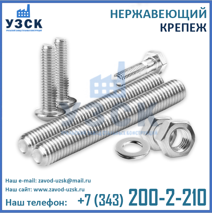 Уральский Завод Стальных Конструкций – это непосредственный производитель нержавеющего крепежа, выпускающий продукцию высокого качества, подтвержденную сертификатами ИСО, декларациями соответствия, и прочими необходимыми разрешительными документами. В штате завода УЗСК только высококвалифицированные сотрудники, имеющие профильное образование. Сварочные работы осуществляют специалисты, аттестованные по технологии НАКС. А инженеры конструкторского отдела нашего Завода помогут Вам в выборе подходящих именно Вам метизов из нержавеющей стали, подготовят необходимые чертежи и схемы, а также разработают конструкторскую документацию для Вашего заказа.
